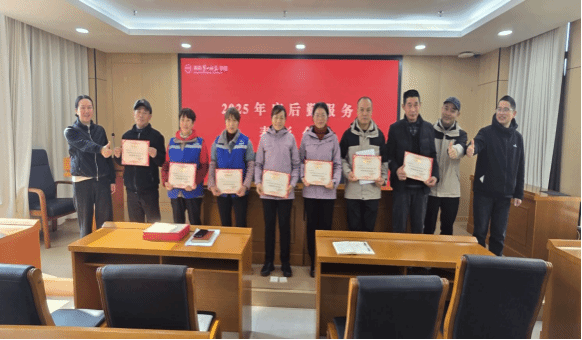 1月9日,后勤处在百熙楼414会议室召开2025年物业员工表彰大会,会议由后勤处处长彭善琼主持。