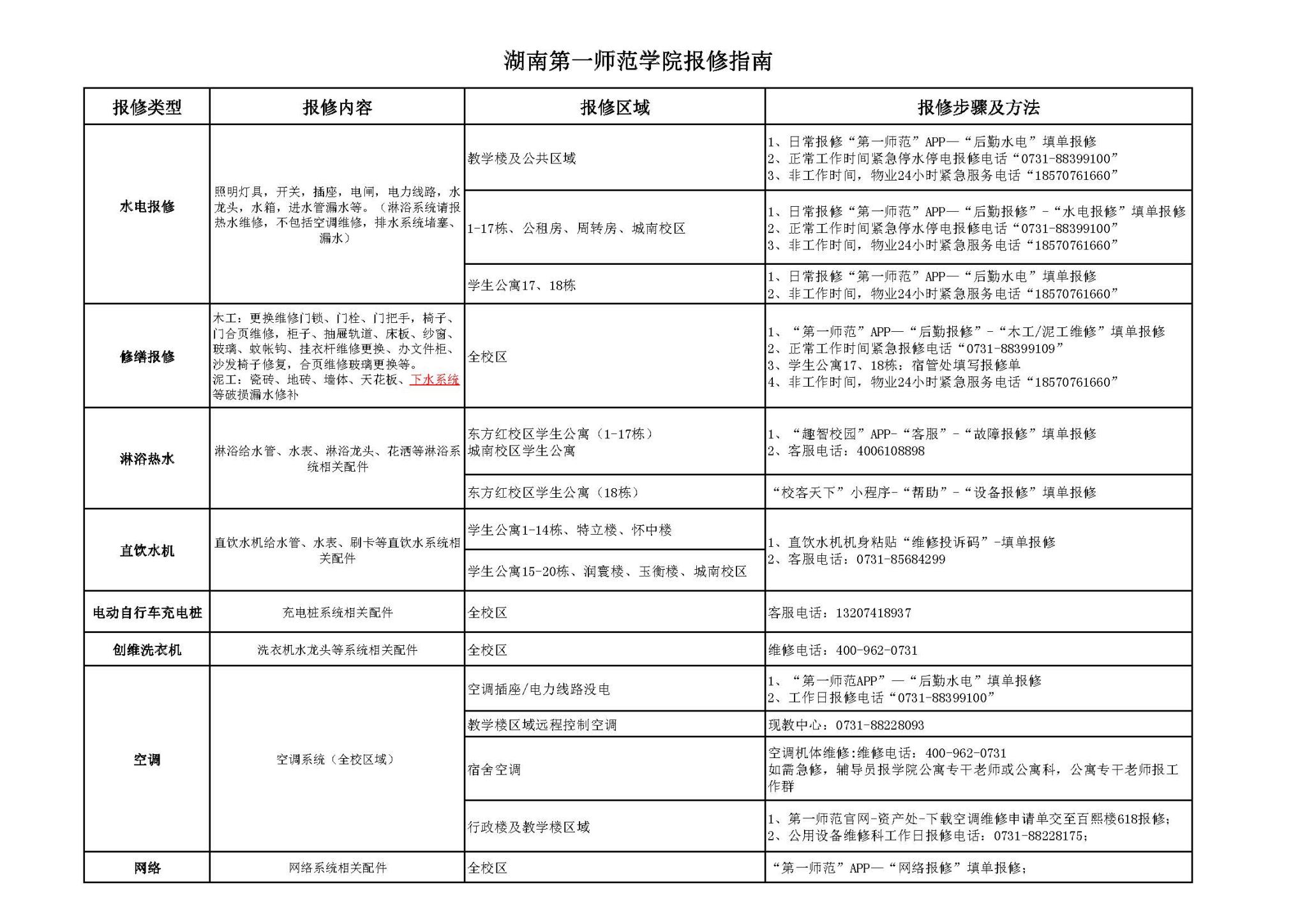 湖南第一师范学院报修指南